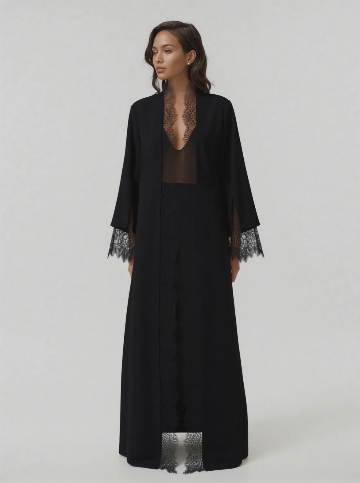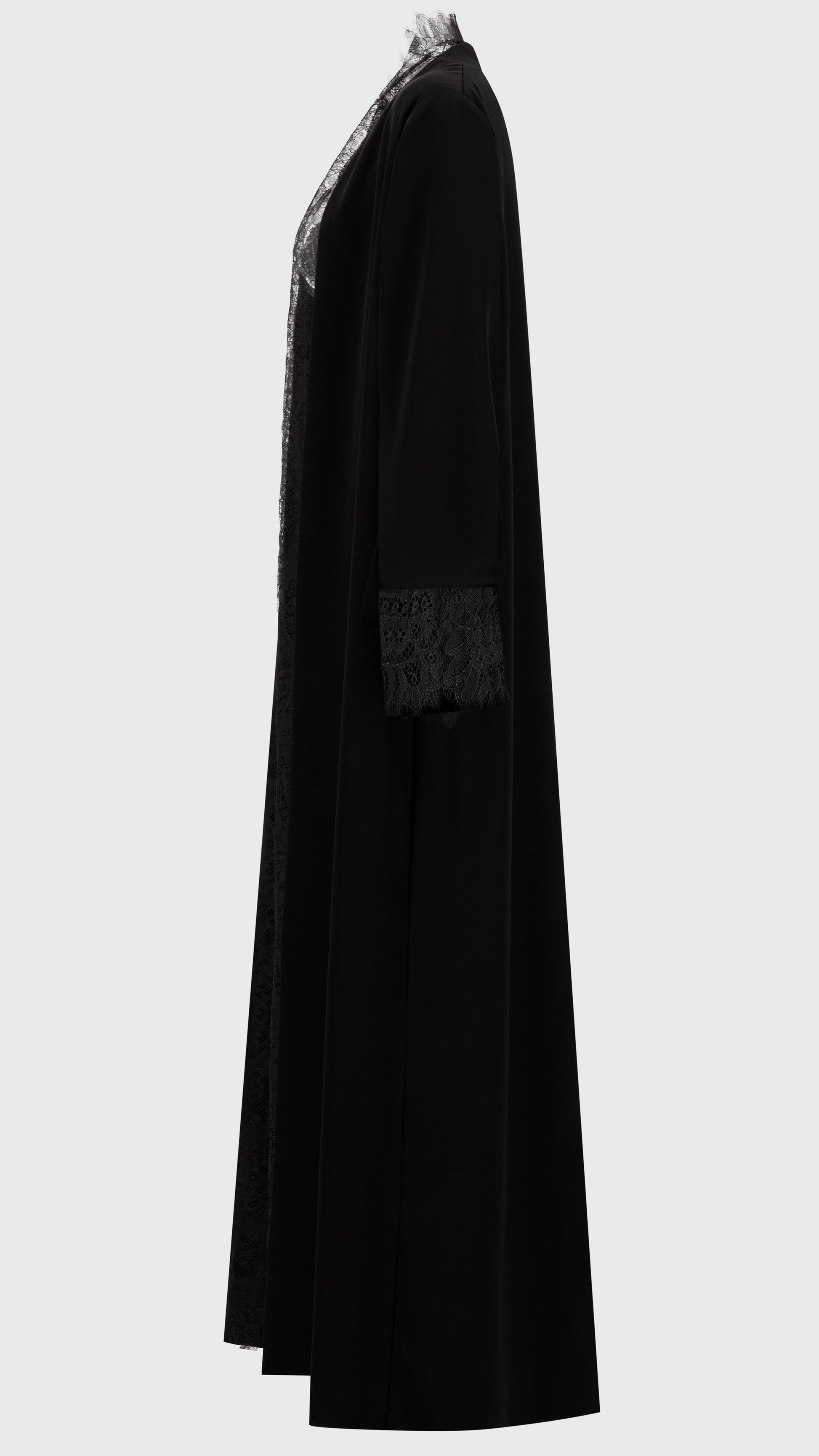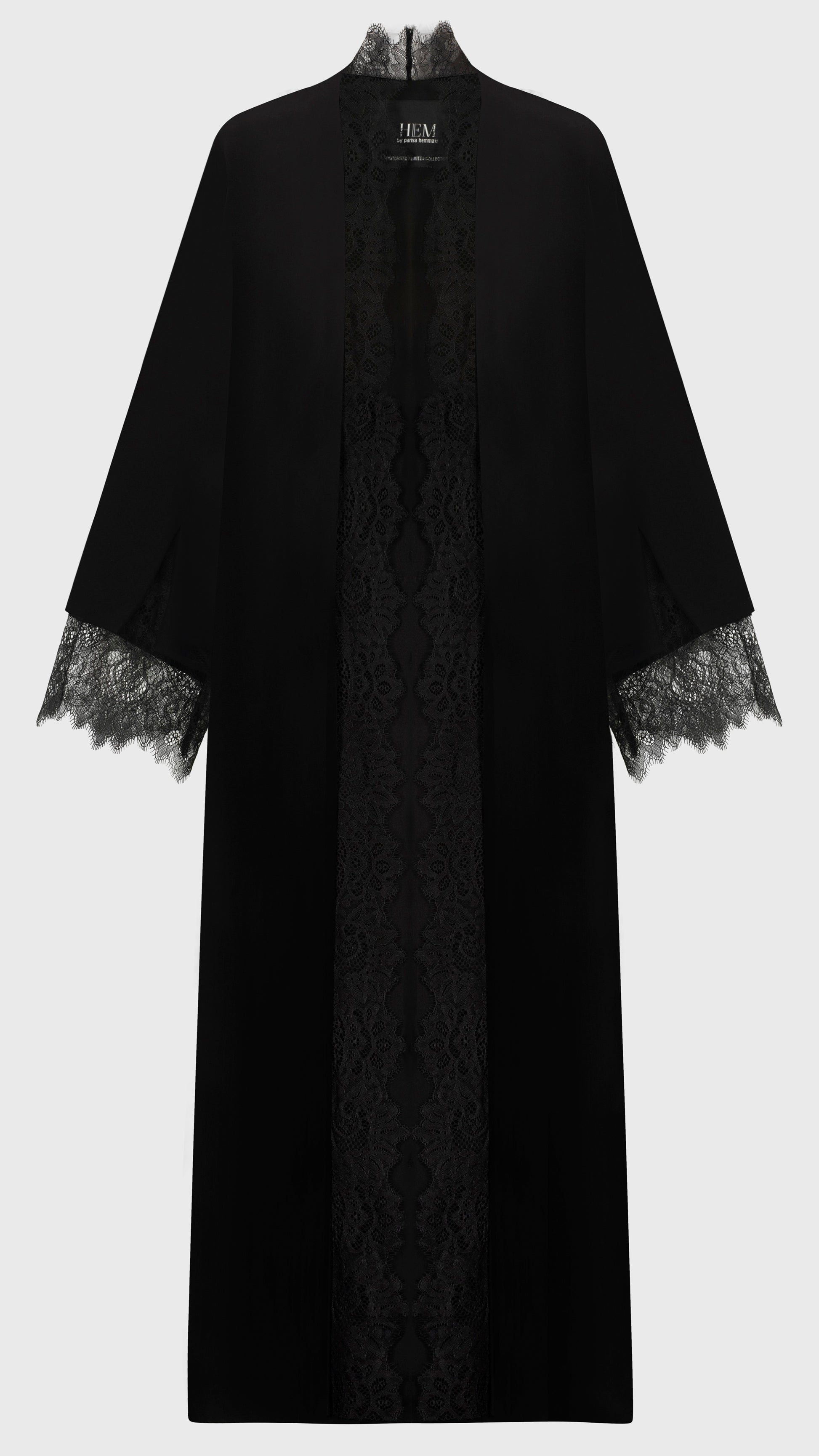 Unveiling the CREPE LACE Black Abaya Jacket by HEM Fashion—a refined blend of sophistication and luxury. Tailored to perfection, this piece is crafted from premium Japanese crepe, offering a fluid, graceful silhouette. Delicate French lace accents elevate the design, adding an exquisite touch of femininity. Designed for the fashion-conscious woman, it seamlessly pairs with a matching Sheila for a polished look. A timeless statement of elegance, reimagined for the modern wearer.