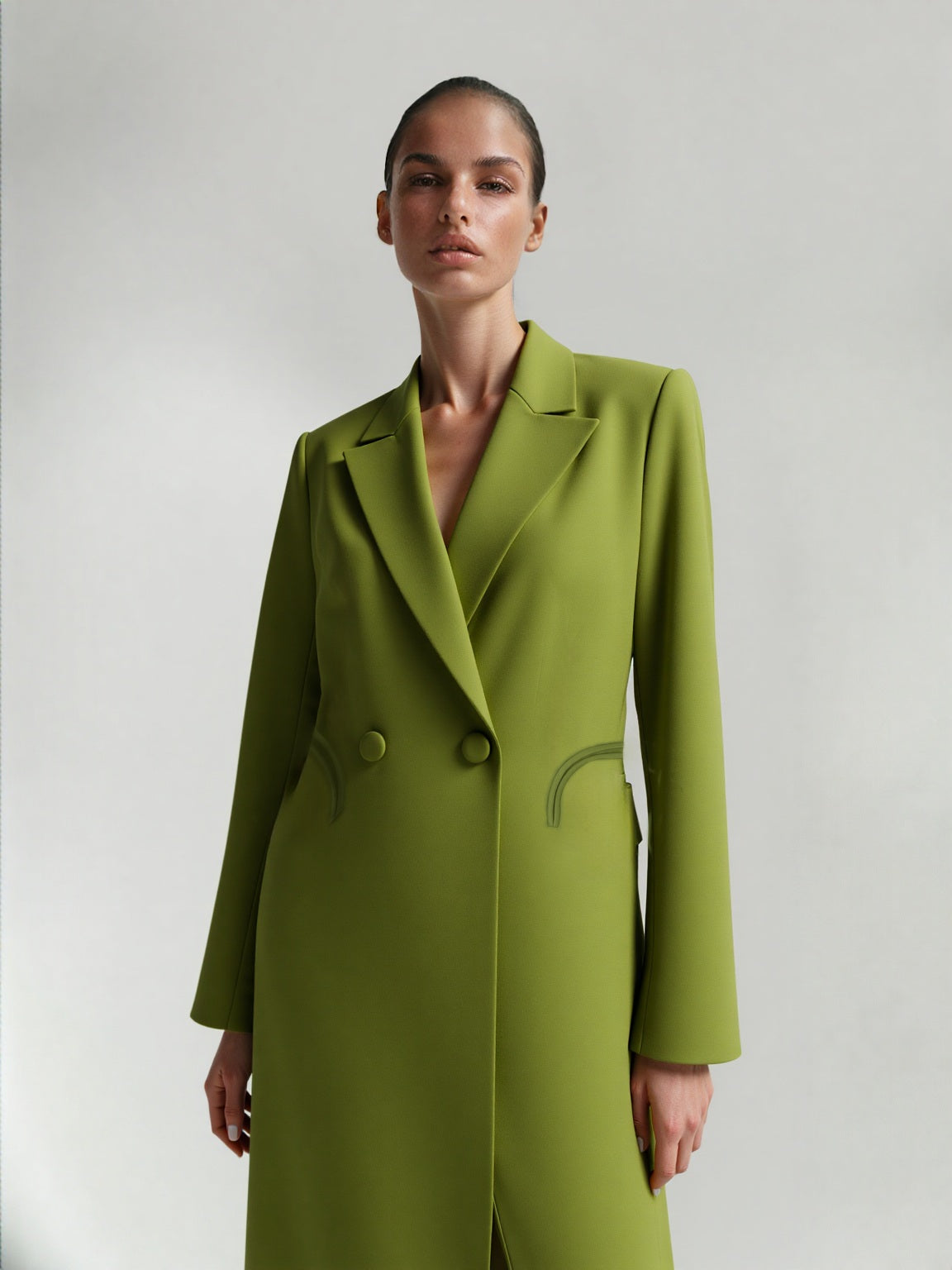 Sleek, bold, and impeccably tailored—the CURVA Blazer redefines modern sophistication. Crafted from luxurious Japanese crepe, it offers a fluid yet structured fit that flatters effortlessly.