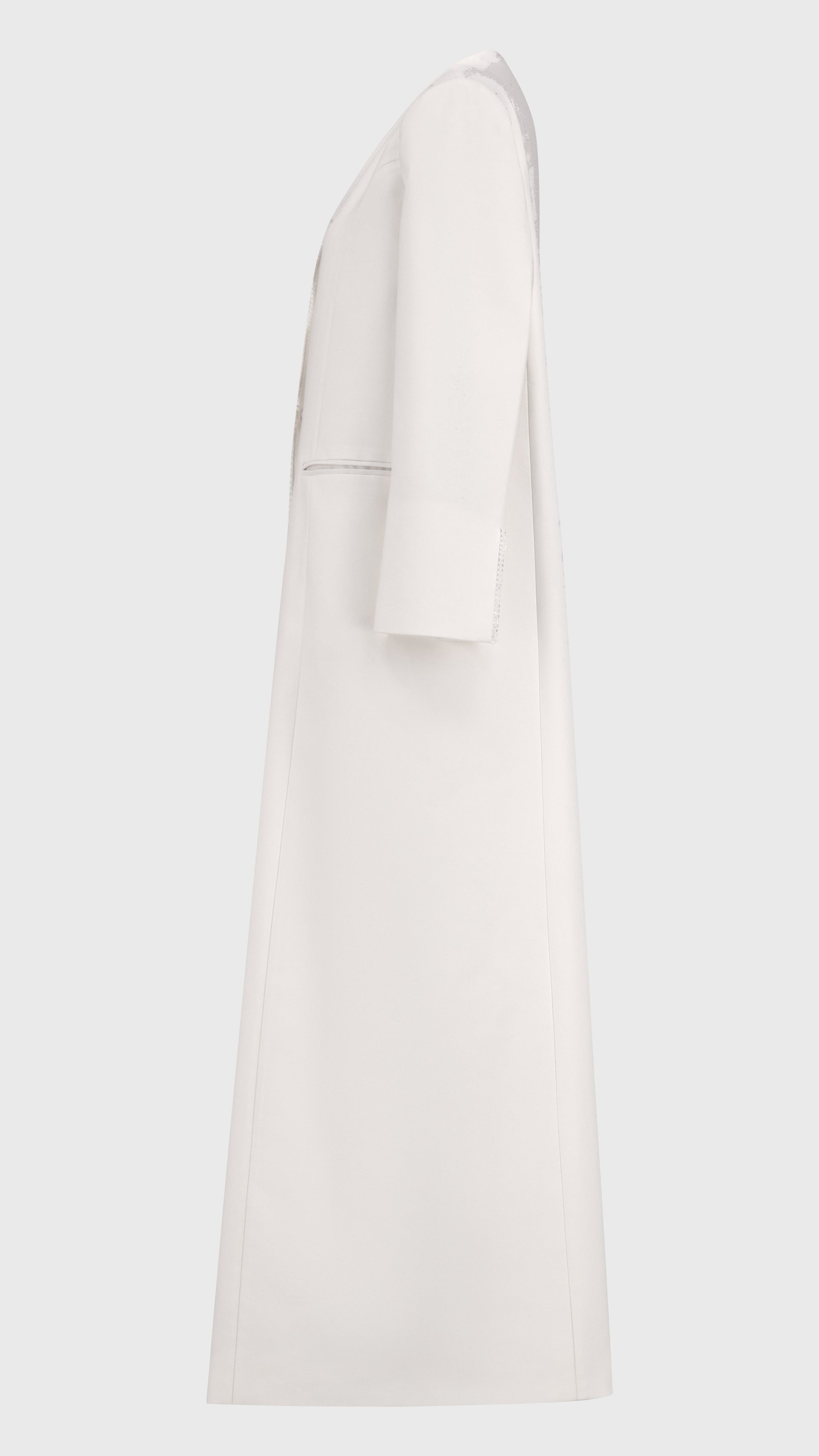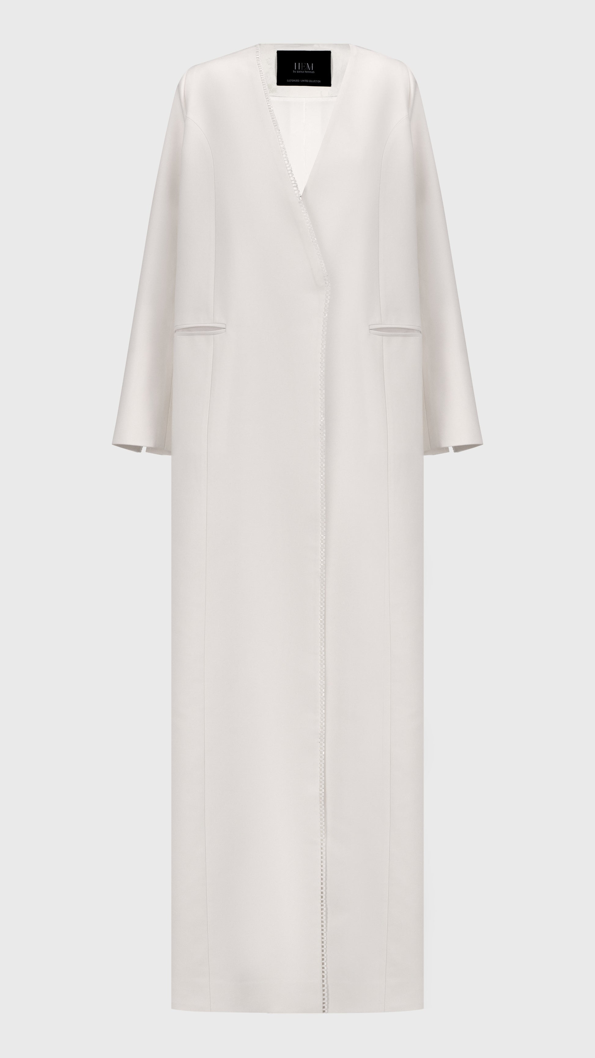 The EDGE Blazer in Off White embodies quiet sophistication. Crafted from luxurious Turkish viscose, its fitted silhouette flatters with precision. Hand embellishments glimmer subtly, reflecting expert artistry. Pair with a matching sheila for a look that is effortlessly poised and refined.