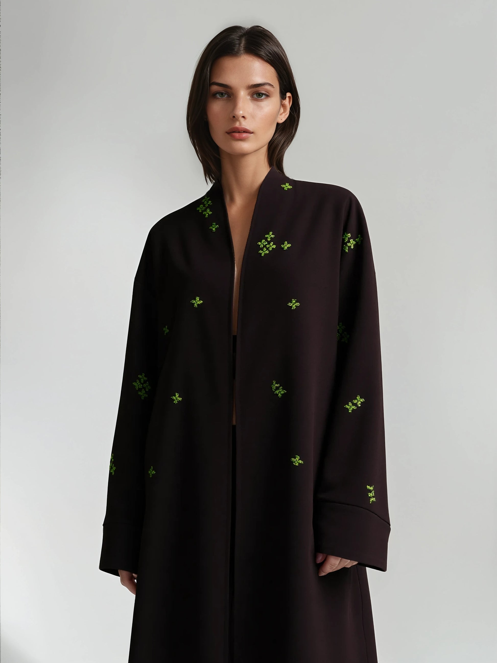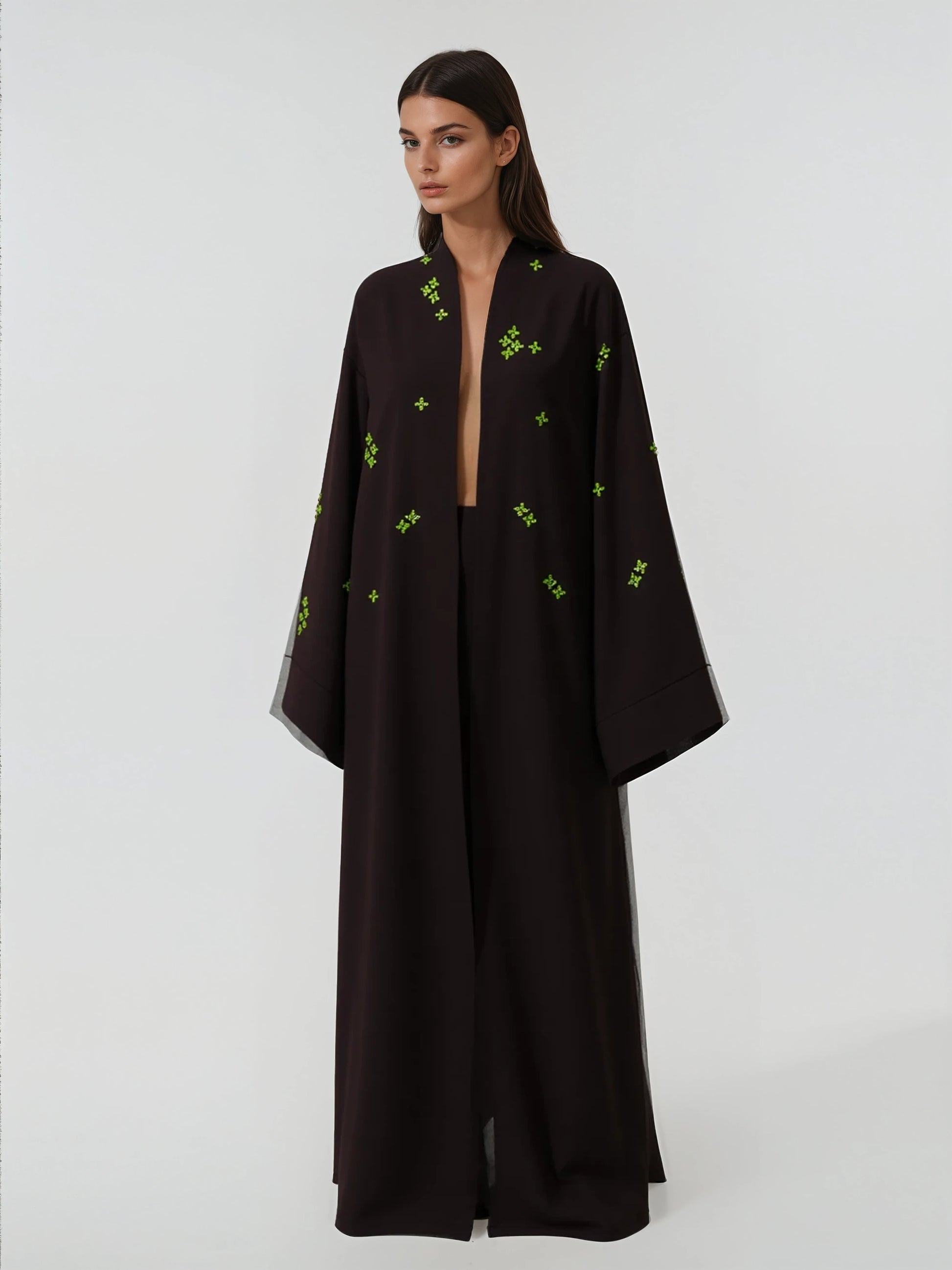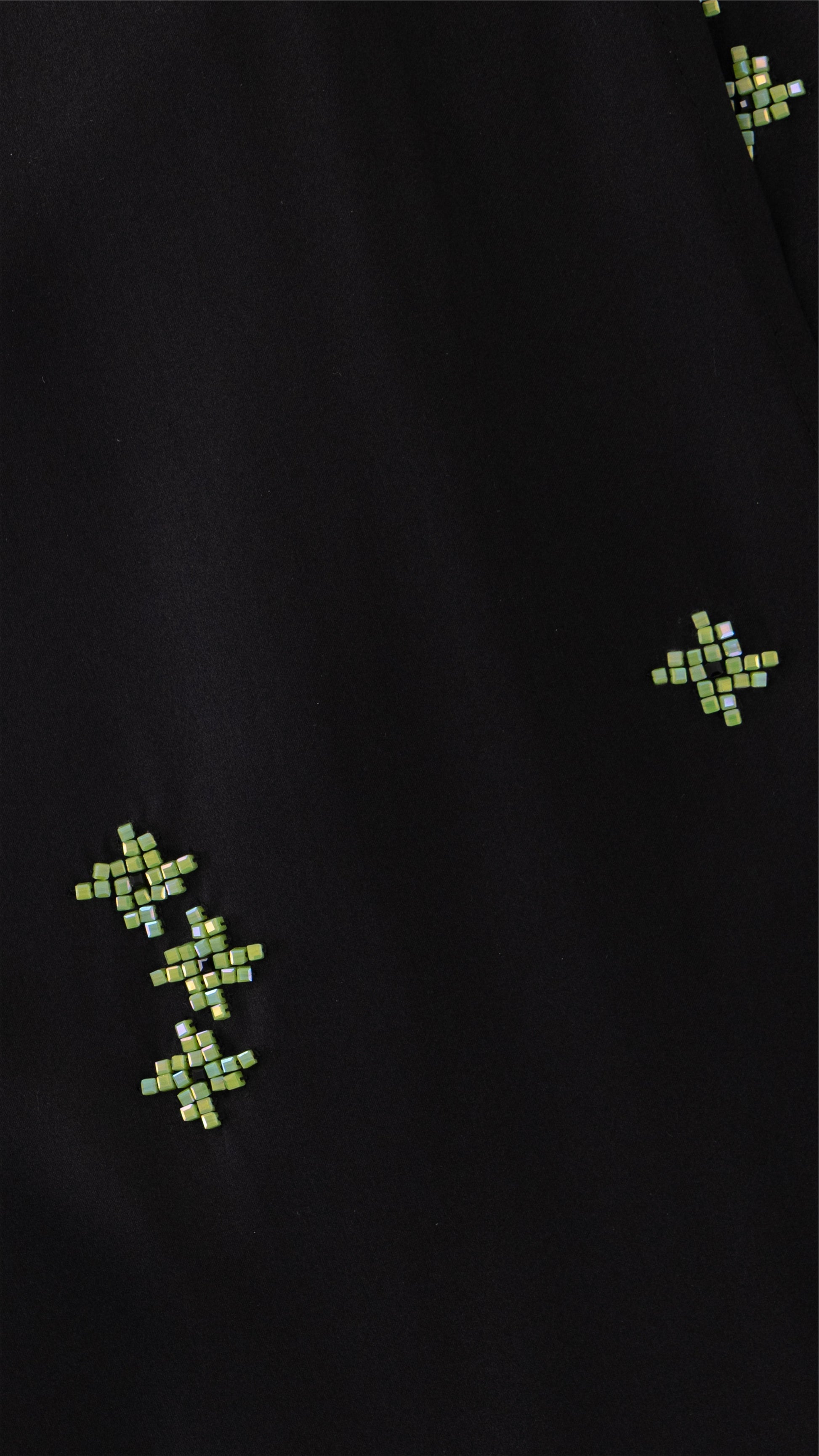 LIME BLACK by HEM Fashion—an effortless fusion of elegance and comfort. Crafted from exquisite Japanese satin, its flowing silhouette features delicate hand embellishments for a subtle shimmer. Designed in a relaxed fit, it pairs perfectly with the matching sheila for a refined monochrome statement. Quiet power, undeniable grace.