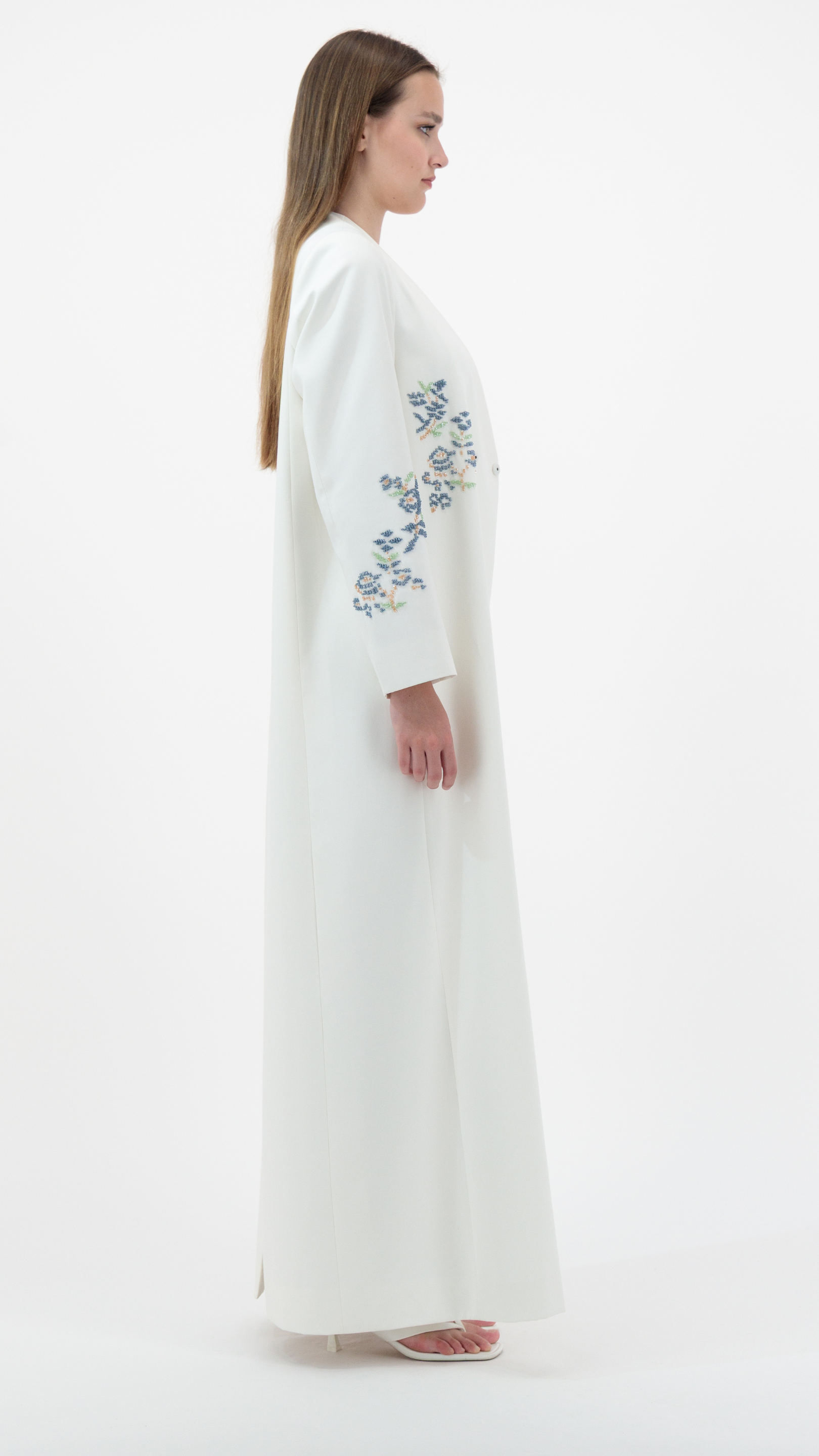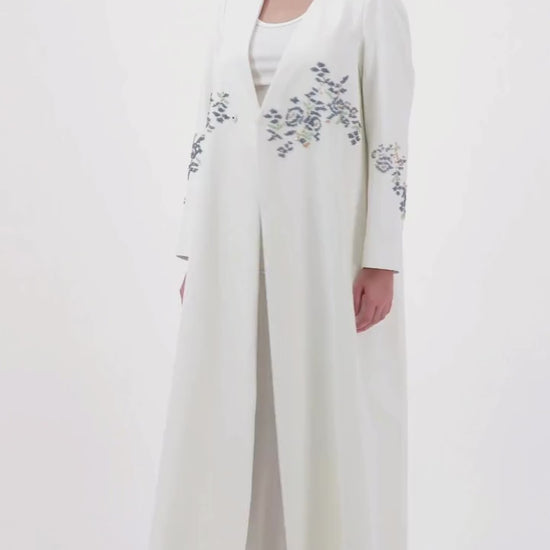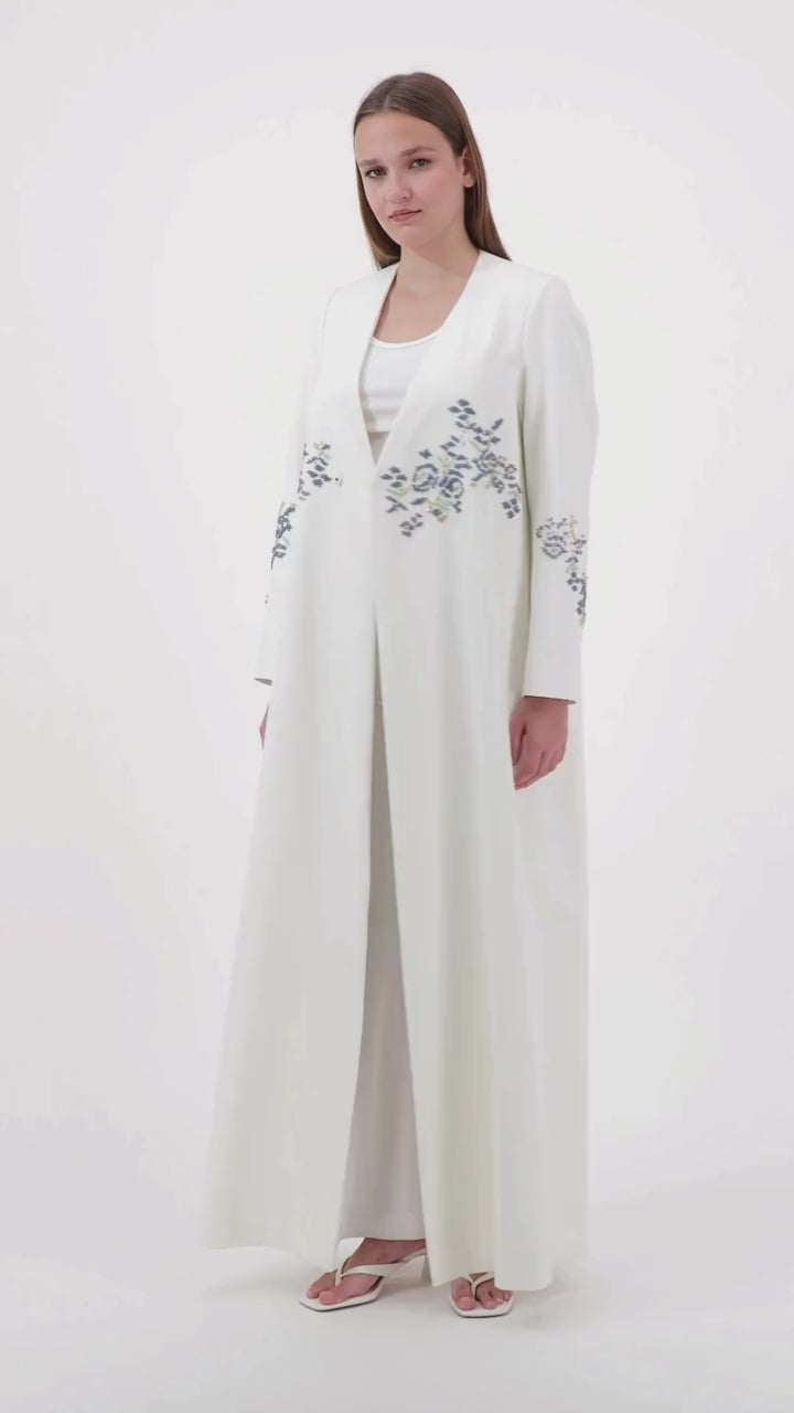 قطعة أنيقة من قماش الفيسكوز التركي بقصّة راب مستوحاة من البليزر، مزينة بتطريزات يدوية ناعمة لإطلالة راقية وعصرية، وتُنسّق مع الشيلة بكل أناقة